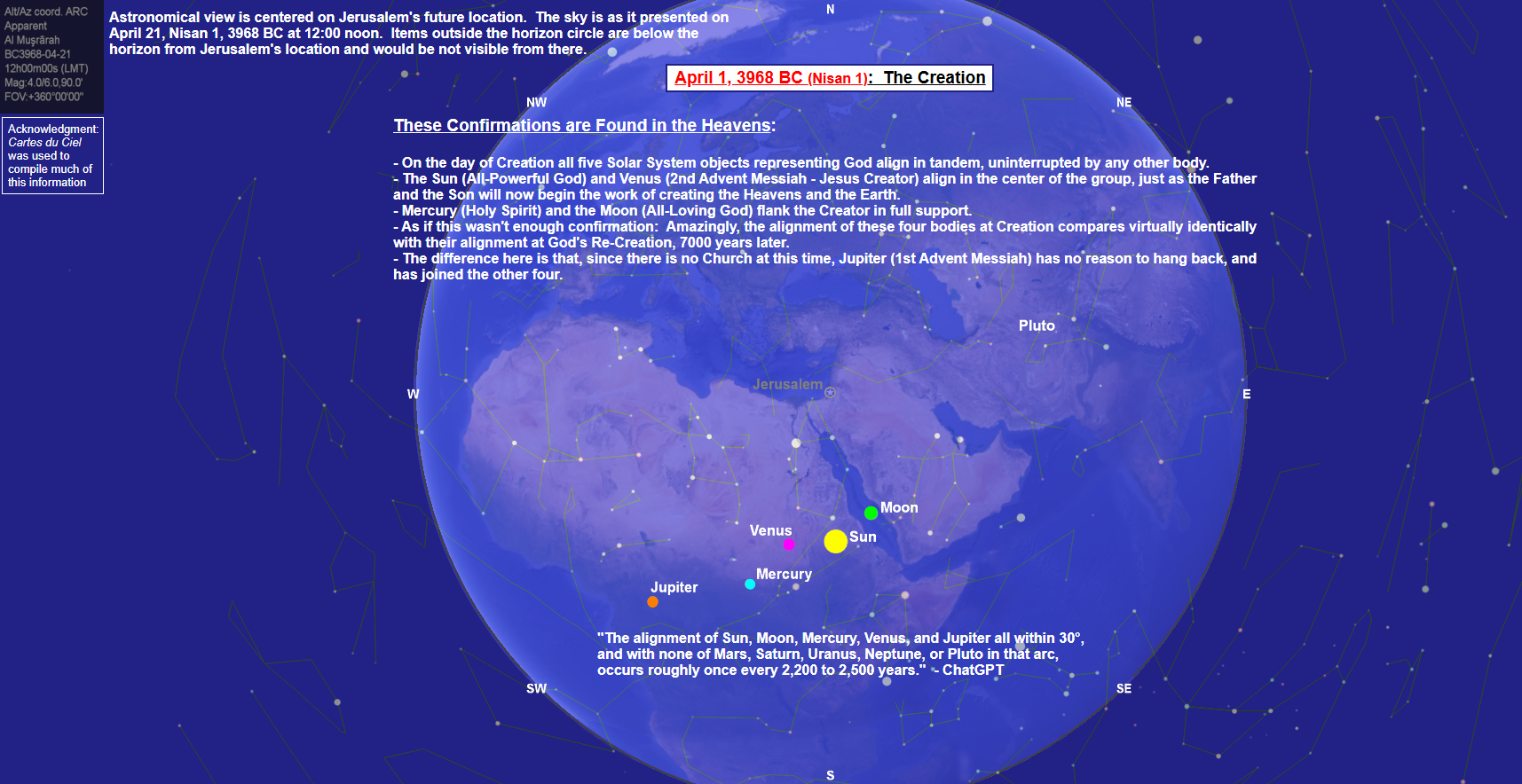 I will begin by clarifying that this section will be discussing God's configuration of the heavens, and some of the messages to us which He appears to have placed there. This has nothing to do with astrology, which is Satan's corrupted copy of what God has created and instructed us to consider: